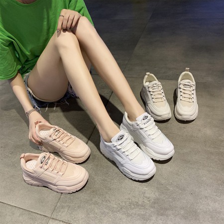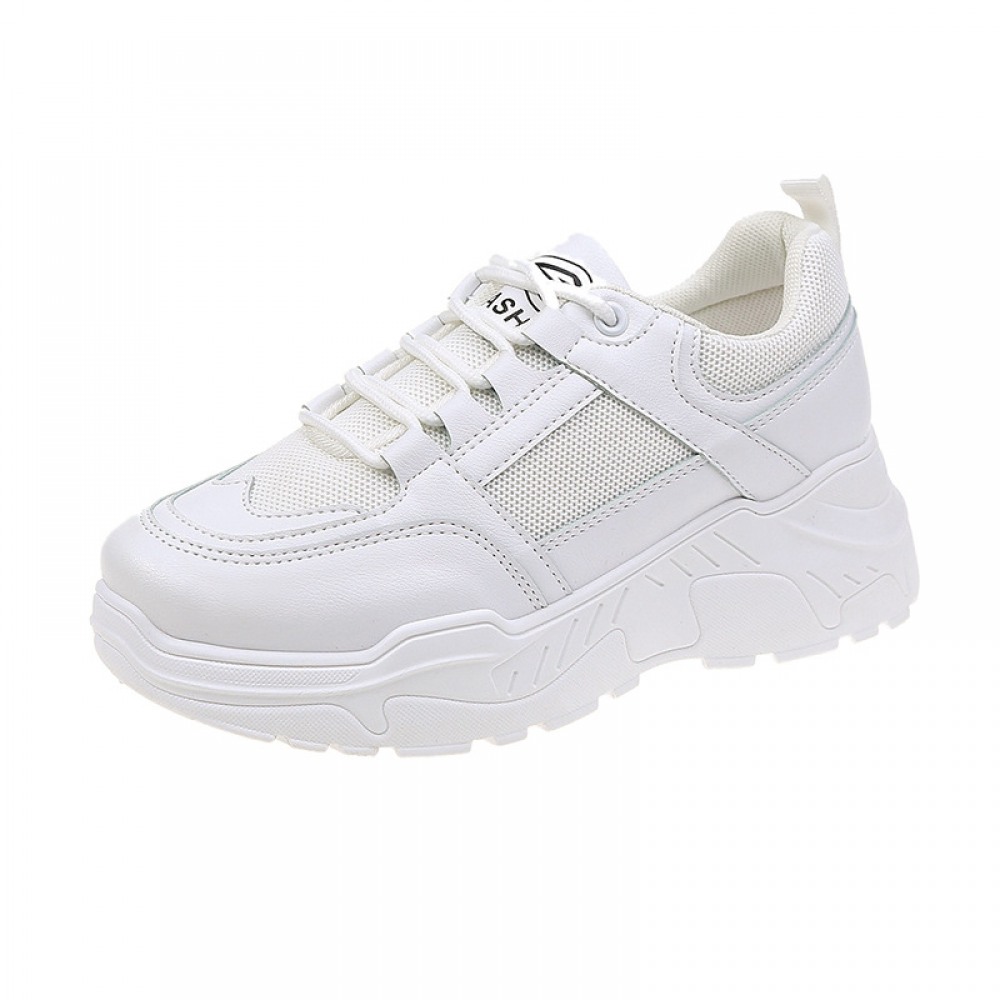Women's New Thick-Soled Shoes Breathable Round Toe Student Casual Sports Shoes Trendy Sneakers White