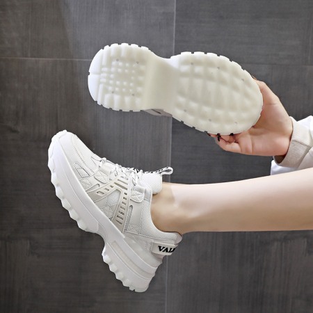 Women's New Thick-Soled Shoes Breathable Round Toe Student Casual Sports Shoes Trendy Sneakers White