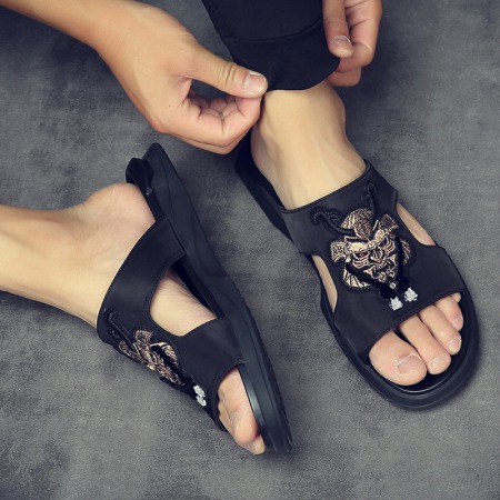 Summer Men's Embroidered Cloth Surface Men's Sandals Open Toe Men's Shoes